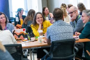 Early-childhood-education professionals at the Grand Junction regional talent summit discuss ways to boost talent pipelines into their sector in May.