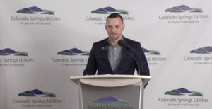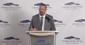 Colorado Springs Utilities CEO Travas Deal speaks at a news conference Monday.