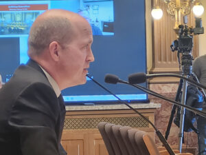 Brian Mason, district attorney for the 17th Judicial District, testifies for Senate Bill 11 before the Senate Judiciary Committee.