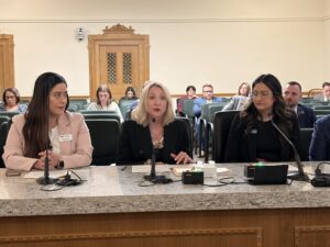 Colorado Chamber of Commerce President/CEO Loren Furman testifies for SB 137 in a House committee Wednesday while surrounded by fellow proponents Patty Salazar, the executive director of the Colorado Department of Regulatory Agencies, and Kara van Stralen, a business lobbyist.