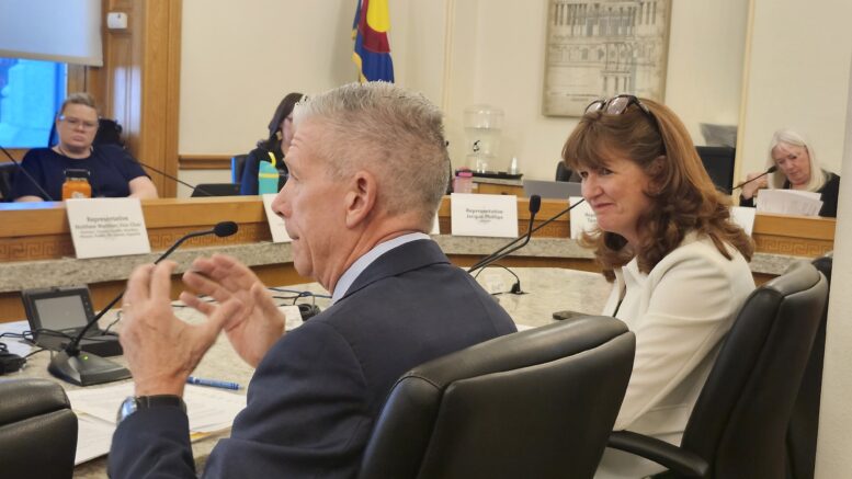 Colorado state Rep. Rick Taggart and House Speaker Julie McCluskie explain their workforce-development bill to the House Education Committee on March 25.